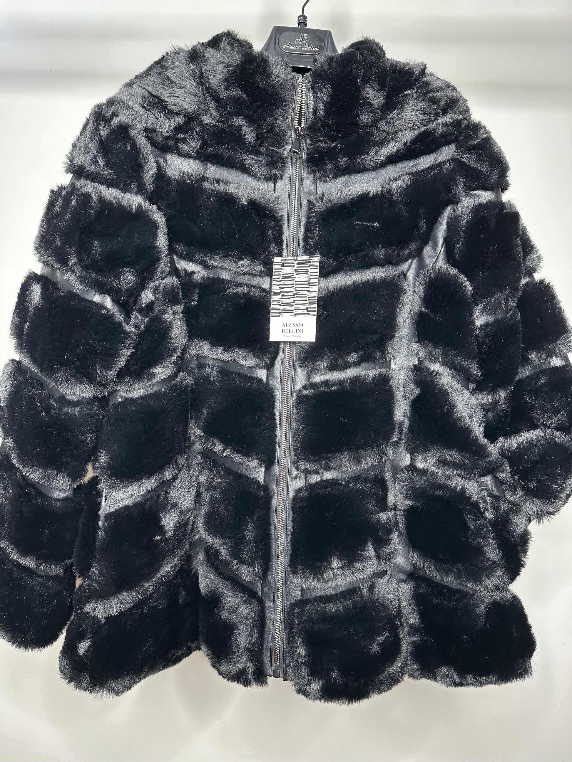 Pelliccia Calibrata con Cappuccio, Alessia Bellini - Nero